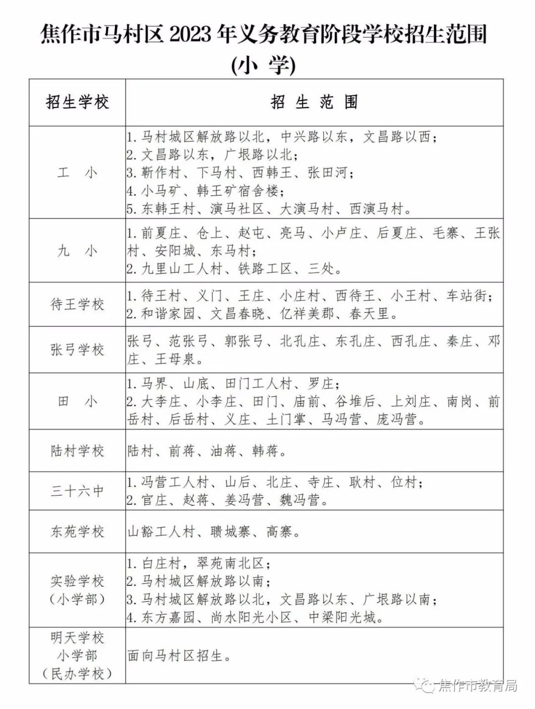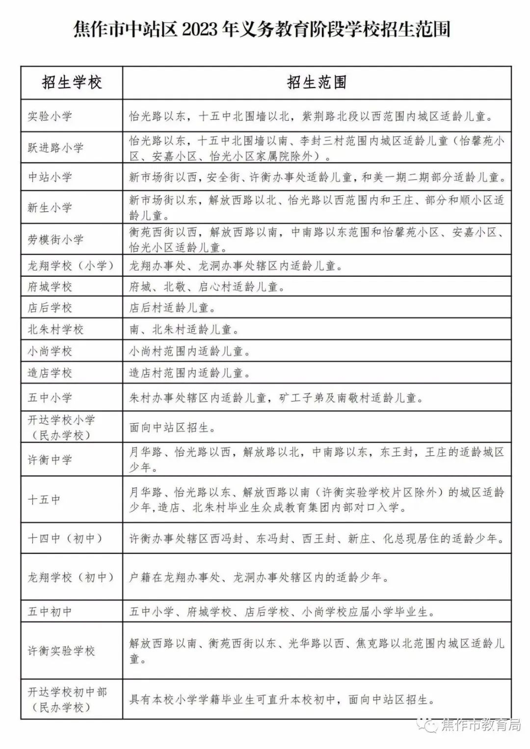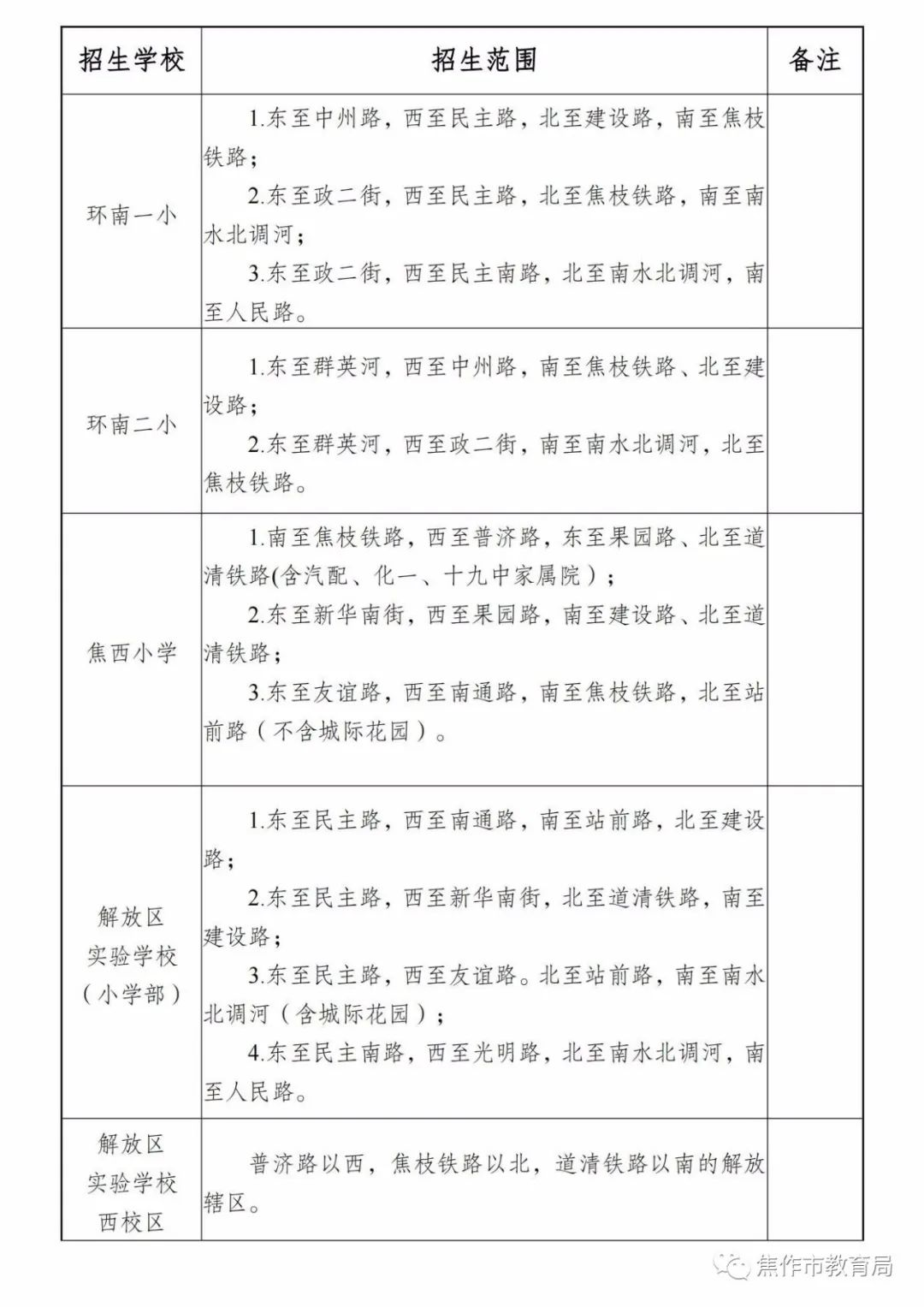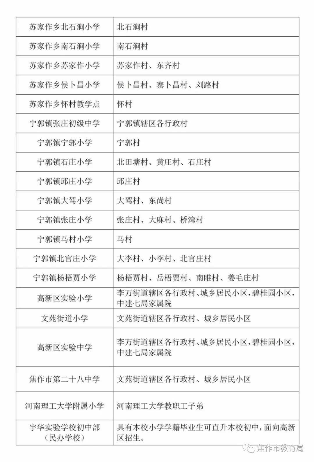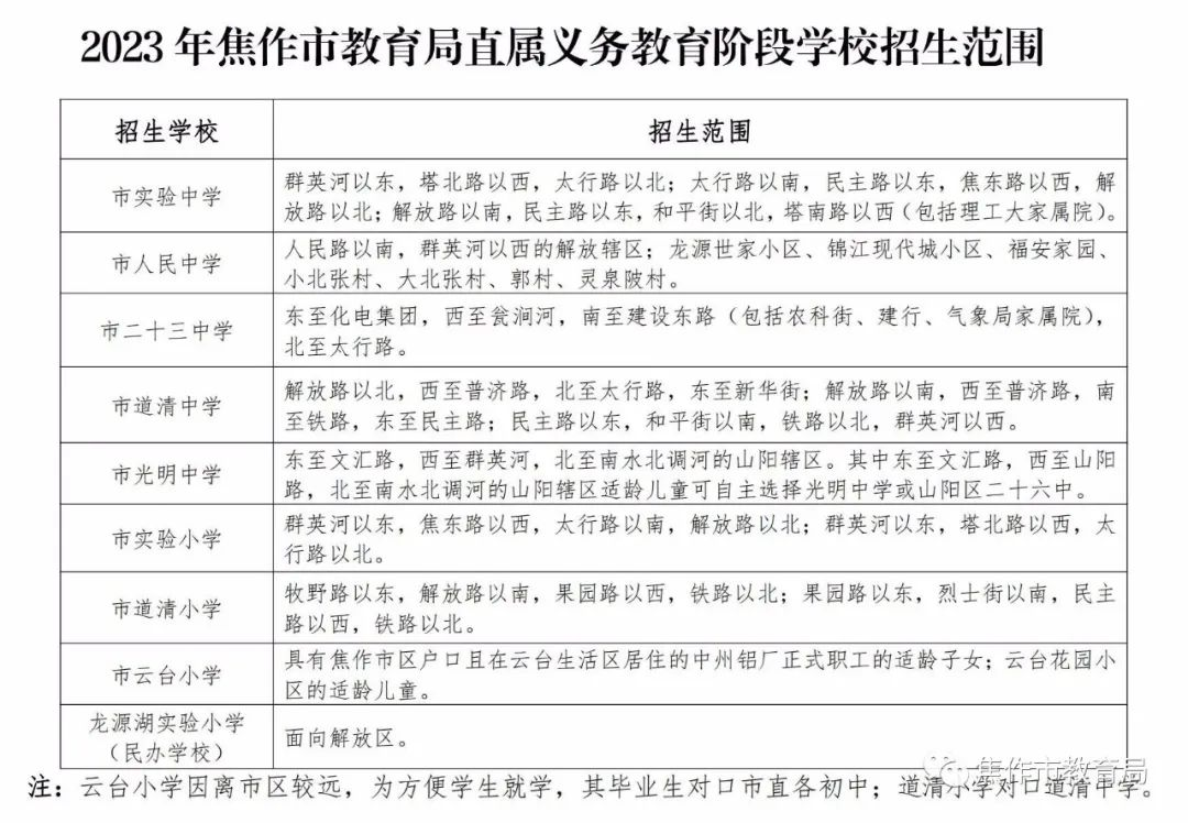 焦作市2023年城区中小学划片范围公布